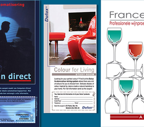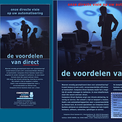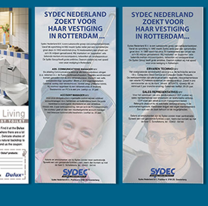 Advertenties Computers Direct Systems, Dulux Systems en Sopexa wijnen. Personeelsadvertenties voor Sydec computerprodukten.