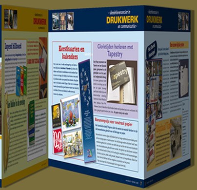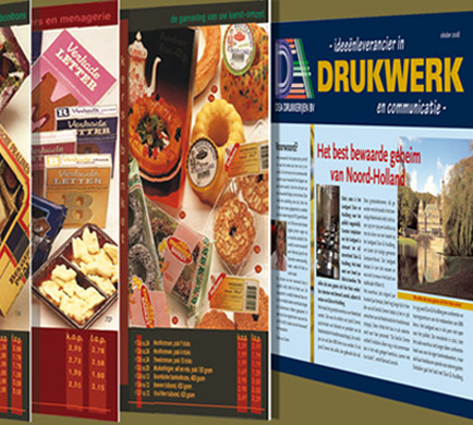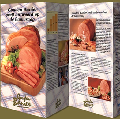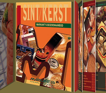 Folders voor Markant's seizoenaanbod, Markant's Gouden Banier vleeswaren en Dea Drukkerijen.