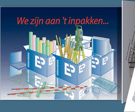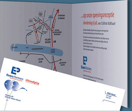Verhuiskaart en uitnodigingskaart voor Evers Partners, met bijbehorende enveloppen.