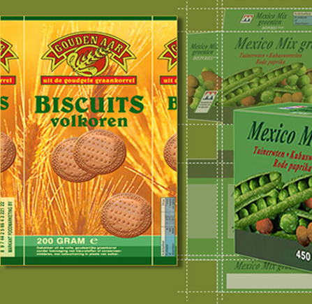 Verpakkingen voor Markant's M-huismerk en Gouden Aar.