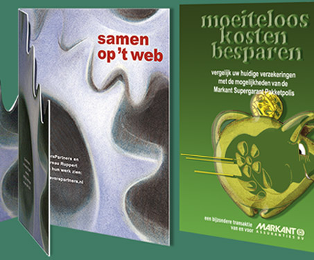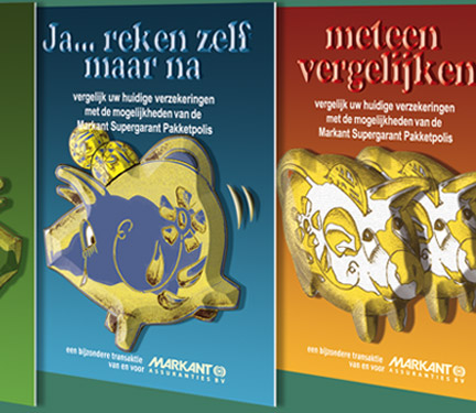 Wenskaarten voor EversPartners, in krijt uitgevoerd. Aktiemateriaal voor Markant Assuranties, met illustraties in krijt, bewerkt met photoshop.
