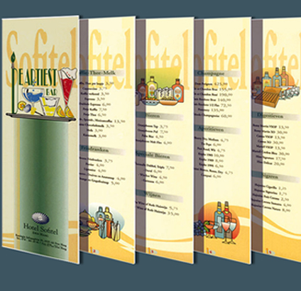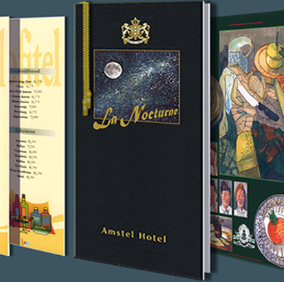 Achtkantige menukaart Sofitel. Menukaarten voor Amstel hotel en De Kempers Roef (